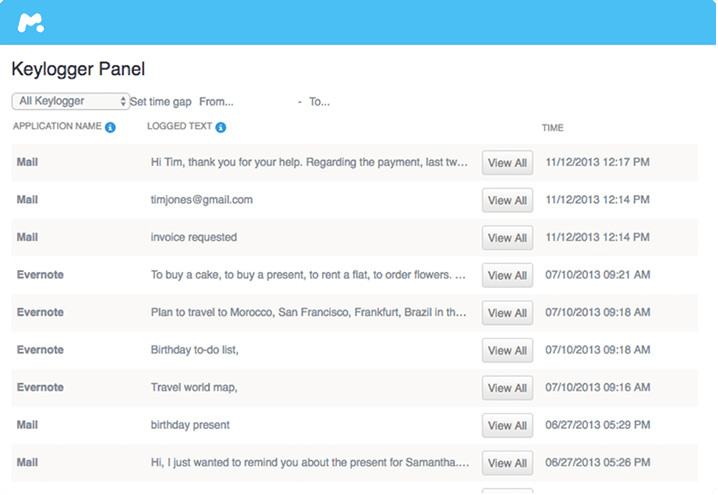 Bei mSpy sieht das Keylogger-Portal wie folgt aus: