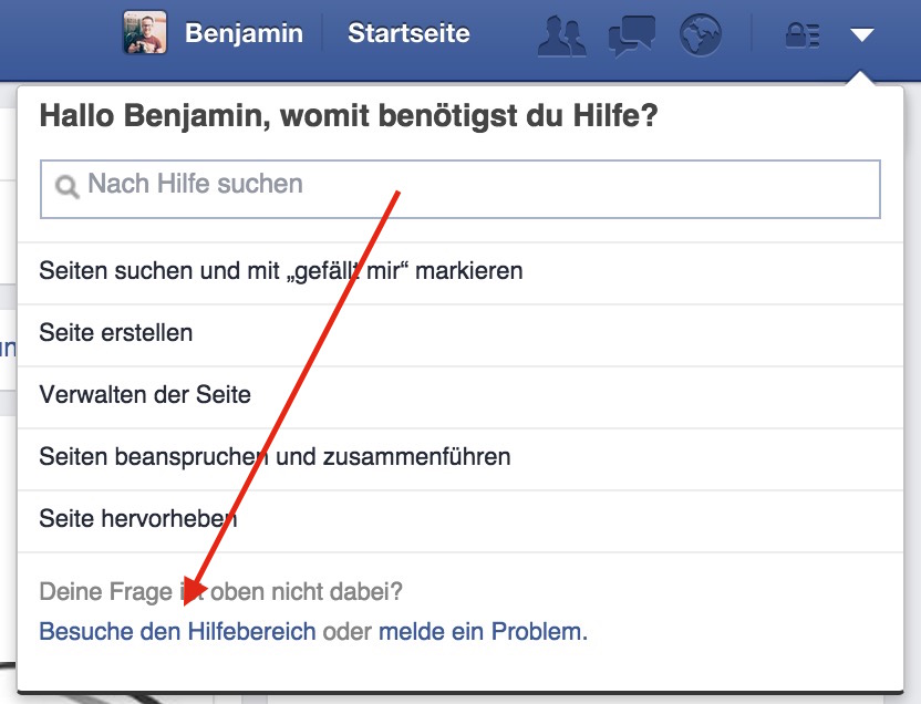 Das Löschen des Facebook Kontos versteckt sich in der Facebook Hilfe. Dazu über das kleine Dreieck oben rechts die Hilfe aufrufen.