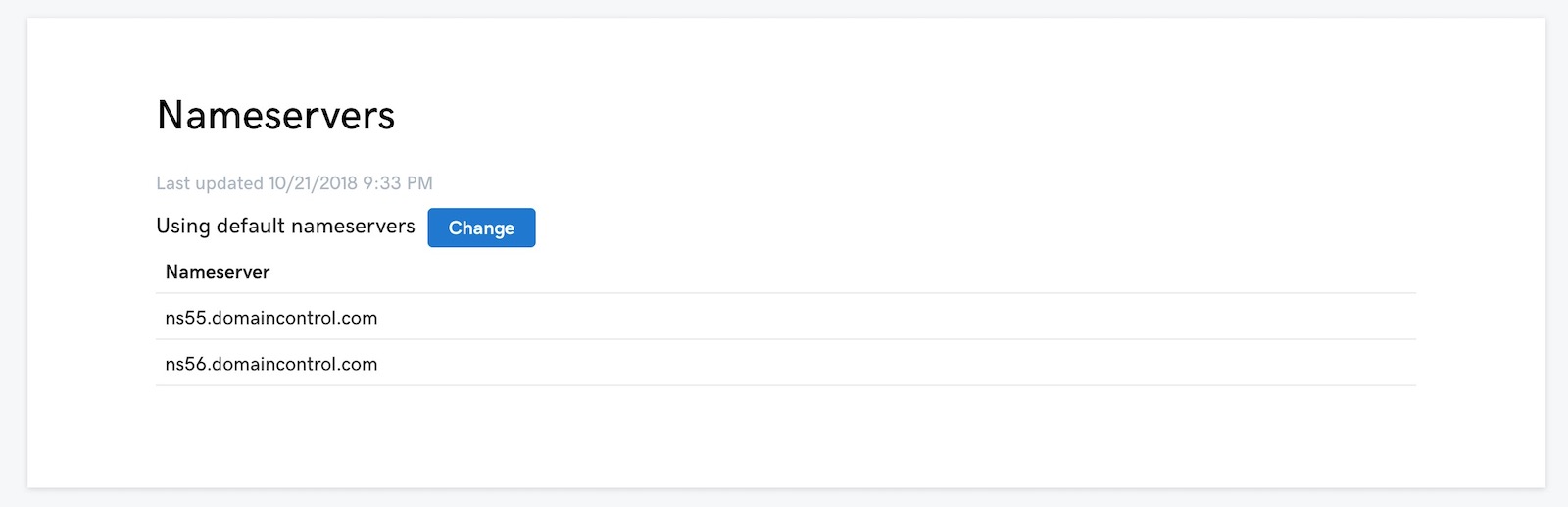 Im DNS Management von GoDaddy.com scrollt ihr zum Abschnitt Nameservers. Dort seht ihr die beiden Nameserver von GoDaddy.com. Zur Änderung der Nameserver klickt ihr auf Change.