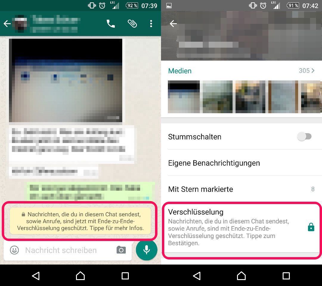 Nachrichten zwischen einzelnen Nutzern aber auch in Gruppen sind jetzt nur noch für die entsprechenden Personen lesbar. WhatsApp selbst kann eure Nachrichten nicht entschlüsseln. Durch das Update erhalten 1 Milliarde WhatsApp-Nutzer über Nacht eine verschlüsselte Kommunikation. Nicht verschlüsselt werden jedoch die Meta-Daten der Nachrichten.